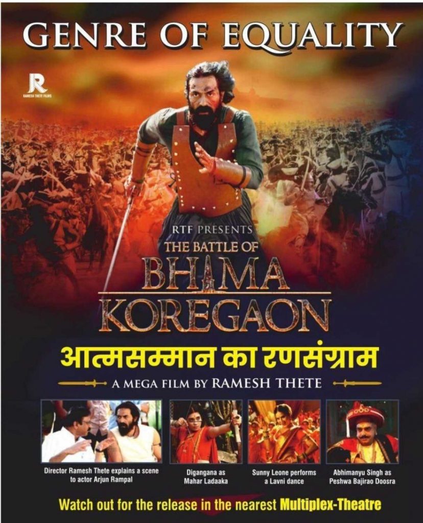 परंतु १ जानेवारी २०१८ रोजी भीमा कोरेगाव येथे झालेल्या दंगलीत जातीय वळण देऊन मराठा विरुद्ध महार असा संघर्ष उभा करून लोकांच्या मनात जातीय तेढ निर्माण करण्याचा प्रयत्न केला गेला. आता त्याच मानसिकतेतून भीम कोरेगाच्या शौर्य गाथेवर निर्मित चित्रपटाला विरोध करण्यात येत आहे.